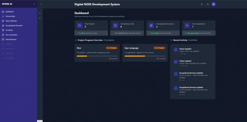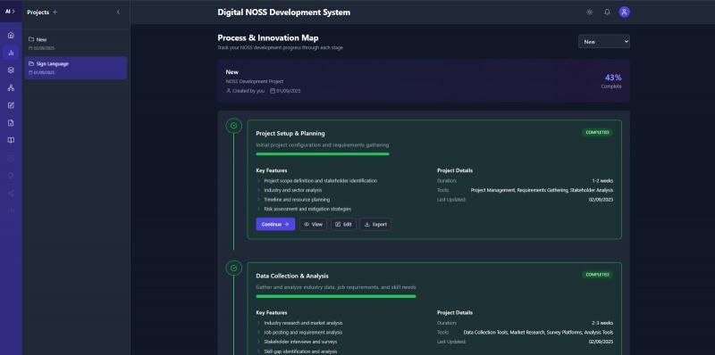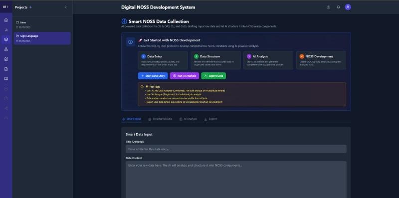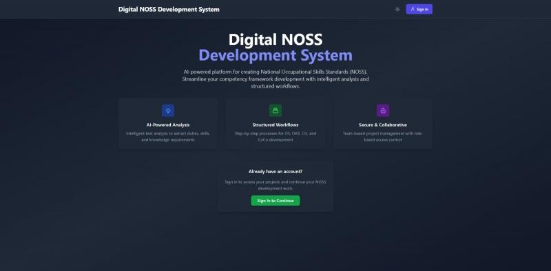 The Digital NOSS Development System is an AI-powered platform that transforms the way National Occupational Skills Standards (NOSS) are developed in Malaysia. Traditionally, NOSS creation has been a manual, time-consuming, and fragmented process requiring multiple stakeholder reviews. This system introduces a digital-first approach, making the process 70% faster and 85% more consistent across standards.