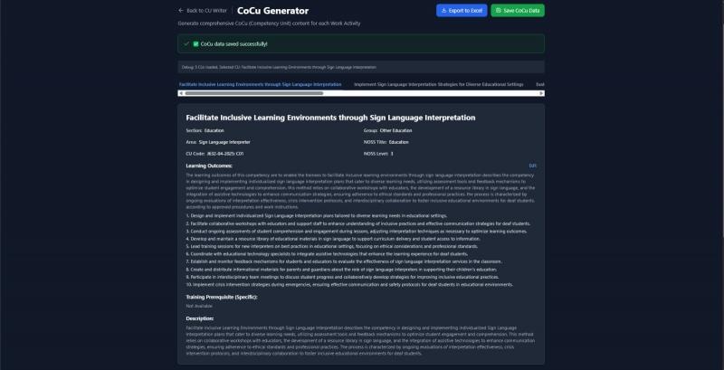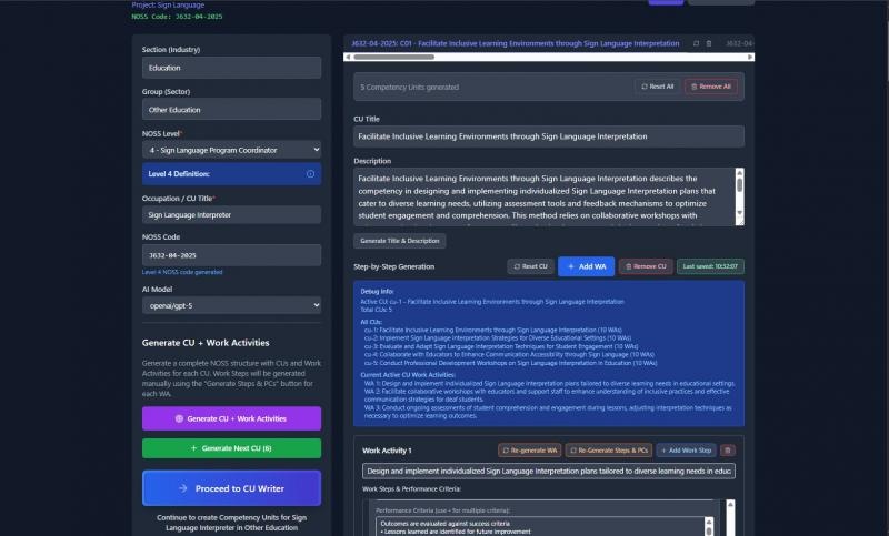 AI-powered generation of Competency Units (CU) and Competency of Competency Units (CoCu).
