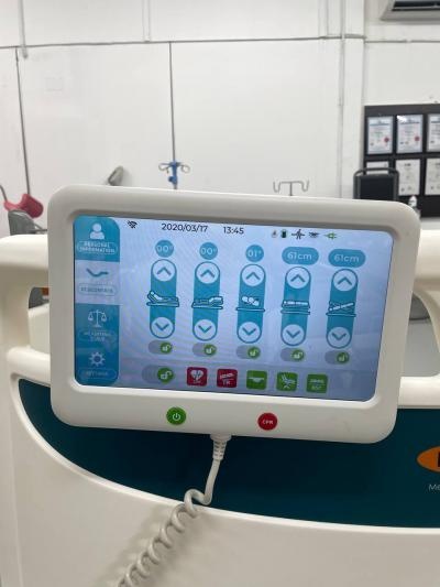 Another key differentiator lies in its multi-point intelligent control system, which utilizes embedded sensors and electronic safety mechanisms to deliver seamless and secure operation. The bed offers multiple interfaces including a hand controller, an exterior nurse control panel, an interior patient panel, a foot-end controller, and an optional central nurse station interface. These are complemented by a touchscreen LCD display with integrated digital weighing, position indicators, and a zeroing scale function. The system also features a bed exit alarm that automatically detects unsupervised patient movement, enhancing safety in high-risk care settings. Emergency functions are addressed through both electric and manual CPR options, as well as a dedicated emergency stop switch for immediate halting of all operations.