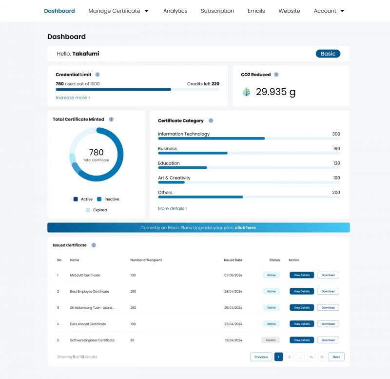 Our state-of-the-art digital certification platform harnesses the power of blockchain technology to revolutionize the issuance, management, and verification of certifications. Designed to serve educational institutions, professional bodies, and organizations, the platform ensures that every certificate issued is immutable, secure, and easily verifiable.
