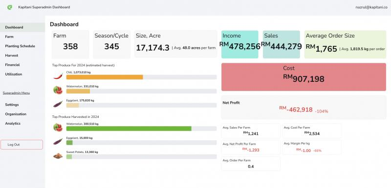 Kapitani’s Digital Farm Management Platform is designed to support smallholder farmers by addressing the lack of farm-level data, aligning with Jabatan Pertanian Malaysia’s mission to enhance agricultural productivity and sustainability.