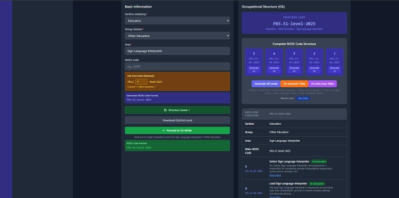 The system reduces the NOSS development process from several months to just a few weeks by automating data analysis, competency mapping, and document generation through AI. This speed ensures standards remain relevant to rapidly evolving industry needs.