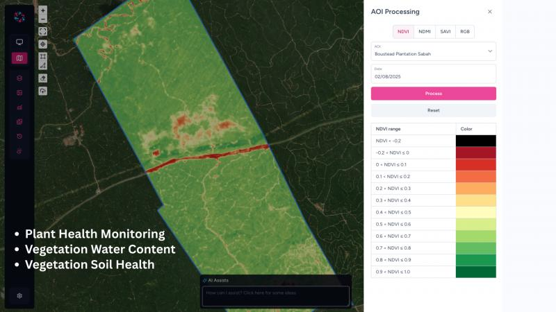 DT Insight Platform Overview Purpose DT Insight is a cloud-based remote sensing and geospatial intelligence platform developed by Deeptronix to empower organizations with data-driven insights for land-based industries. Its core purpose is to simplify the analysis of satellite, drone, and environmental data—transforming raw imagery into actionable intelligence for smarter planning, monitoring, and decision-making. Key Features 1. Automated Remote Sensing Analysis: Weekly updates of vegetation indices (e.g., NDVI, NDWI) and anomaly detection using satellite data. 2. Geospatial Dashboard: Interactive maps with customizable layers, charts, and time-series analytics. 3. Soil Profiling & Crop Health Monitoring: Integrated modules for soil condition, crop health, and early detection of threats such as disease or water stress. 4. API Integration: Connects seamlessly with third-party data providers (e.g., Planet, Airbus), weather APIs, and internal enterprise systems. 5. Multi-user Access & Reporting: Role-based user management, automated reporting, and data export capabilities. Benefits 1. Faster Decision-Making: Timely insights reduce dependency on manual surveys and shorten response time from weeks to days. 2. Cost Optimization: Enables precise resource allocation—fertilizer, labor, irrigation—leading to measurable cost savings. 3. Improved Productivity: Early warning of stress or disease supports yield protection and sustainability. 4. Scalable & Secure: Hosted on AWS, supporting data security, scalability, and cross-region access. Target Audience DT Insight is designed for medium to large enterprises and government agencies in agriculture, plantation, and forestry sectors. Key users include estate managers, agronomists, sustainability officers, and policymakers—particularly those managing 500 to over 100,000 hectares of land. The platform is ideal for those seeking to digitize land monitoring, boost operational efficiency, and meet ESG reporting standards.
