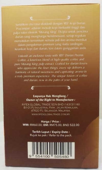 The product aims to deliver a premium-quality beverage that fuses the richness of coffee with the exotic, distinctive flavour of Malaysia’s premium durian variety Musang King. R FEX GT markets it as a “ready-to-mix powder” — a convenient, shelf-stable drink that brings a taste of the tropics to consumers who may not have access to fresh durian.