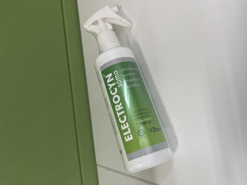 ELECTROCYN soma is an advanced, stabilized hypochlorous acid superoxidised solution for wound care is produced through our e-HOCl technology. This technology doeS not involve any use of chemicals that makes it safe and effective water based wound cleansing solution. Its antimicrobial in nature and helps wound healing without compromising healing tissue. Our e-HOCl technology that we developed produces a stable HOCl that makes it non irritant and stable pH/HOCl throughout its shelf life ensuring its efficacy. ELECTROCYN soma is manufactured in Malaysia by a fully Malaysian company (V3bio) and the product has been registered with MDA, US FDA approved and Halal certified. ELECTROCYN soma is currently the most affordable advanced wound care HOCl solution.