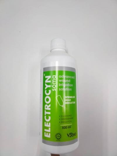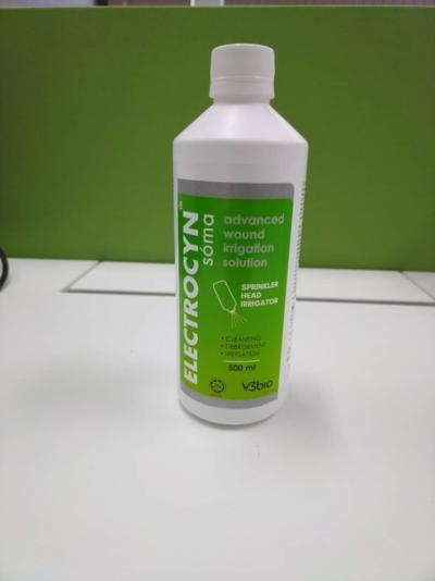 ELECTROCYN soma is an advanced, stabilized hypochlorous acid superoxidised solution for wound care is produced through our e-HOCl technology. This technology doeS not involve any use of chemicals that makes it safe and effective water based wound cleansing solution. Its antimicrobial in nature and helps wound healing without compromising healing tissue. Our e-HOCl technology that we developed produces a stable HOCl that makes it non irritant and stable pH/HOCl throughout its shelf life ensuring its efficacy. ELECTROCYN soma is manufactured in Malaysia by a fully Malaysian company (V3bio) and the product has been registered with MDA, US FDA approved and Halal certified. ELECTROCYN soma is currently the most affordable advanced wound care HOCl solution.