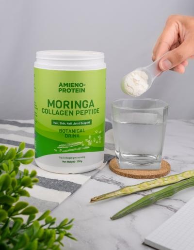 The Moringa Collagen Peptide Botanical Drink Powder is a scientifically-formulated functional beverage designed to support joint health and cartilage repair, particularly beneficial for individuals managing arthritis symptoms. By combining the anti-inflammatory properties of moringa leaf extract with high-quality fish collagen peptides, this drink powder enhances collagen synthesis, promotes joint flexibility, and aids in cartilage regeneration. The formulation also includes natural botanical ingredients for additional antioxidant support, creating a holistic approach to joint wellness. Conveniently available in powder form, it provides an easy-to-use, nutrient-dense supplement that aligns with modern consumers’ demands for effective and science-backed health solutions.