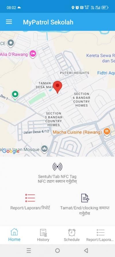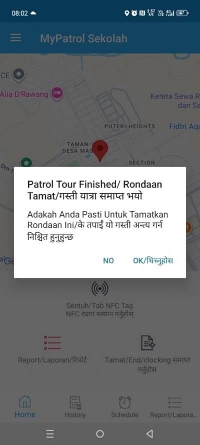 Key features include multi-language support (English, Bahasa Malaysia, and Nepali), a built-in wake-up alarm, GPS tracking, customizable settings, and secure cloud storage. Both clients and security companies can monitor patrol performance, generate, and download reports — including general, incident, fault, detailed, summary, and tour reports — in real time.