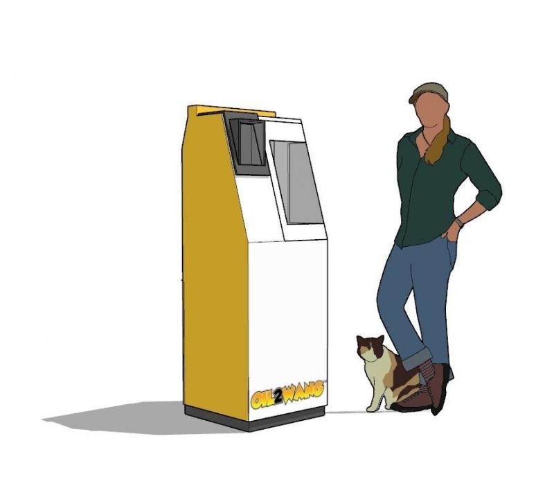 Oil2Wang™ fills the gap between households (user) and licensed used cooking oil (UCO) collectors. The collectors will only come to certain residential area to collect when there is substantial amount of UCO to make do for logistics cost, but one household might only have small amount of UCO kept. This will result in the UCO to not be collected and the user will eventually throw out the UCO. Oil2Wang™ acts as a center point for user to deposit minimal amount of UCO and be paid instantly while collectors need only come once the storage tank is full.