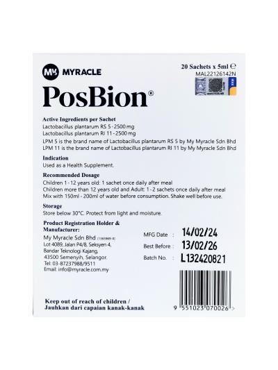 PosBion® Postbiotic Liquid (5 mL), a next-generation gut health supplement, delivering the benefits of beneficial bacteria without the need for live cultures