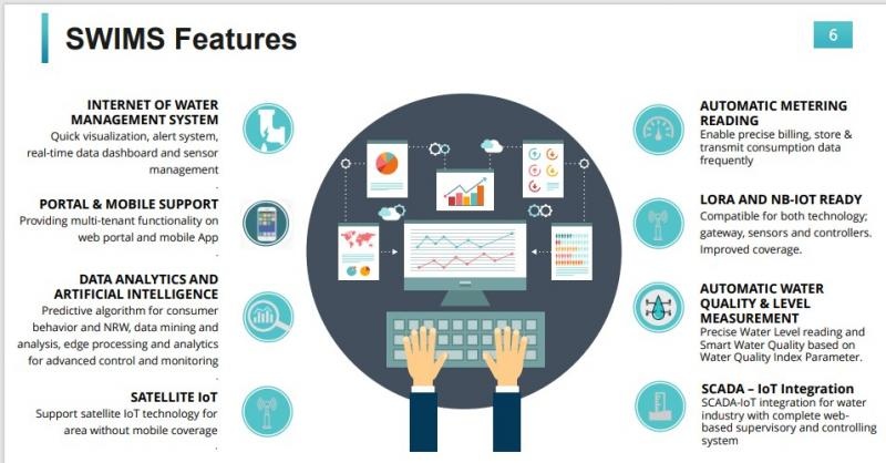 SWIMS is an Internet of Water (IoW) solution that offers end-to-end smart water management to improve non-revenue water (NRW) management, optimise repair and replacement of ageing infra, as well as improve response to weather events such as flooding and water contamination through smart water level and water quality