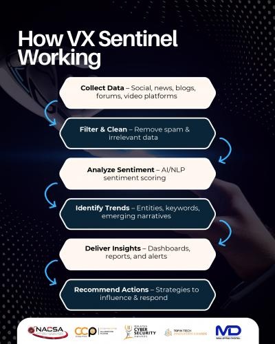 More than just monitoring, VX Sentinel anticipates conversations before they happen. By analyzing trends, keywords, and emerging narratives, the platform generates AI-driven predictive suggestions and actionable strategic reports, enabling leaders to shape public perception and mitigate risks before escalation.